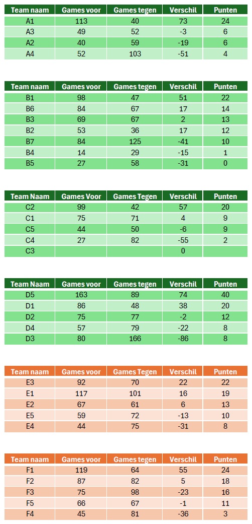 Tussenstand IBVreeswijk Wintertenniscompetitie